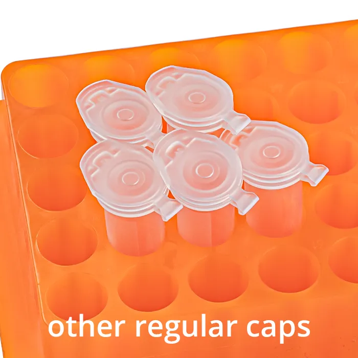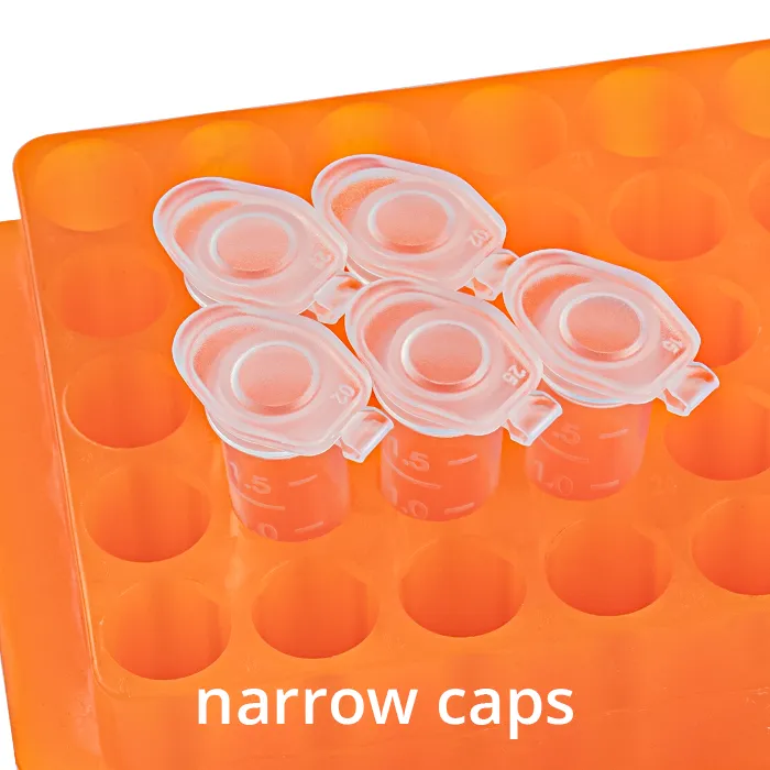 Hyundai Micro style 1.5 mL microcentrifuge tubes have a special narrow cap to allow closer packing in high-density tube racks and prevent caps from colliding. This makes it ideal for rack space-saving.